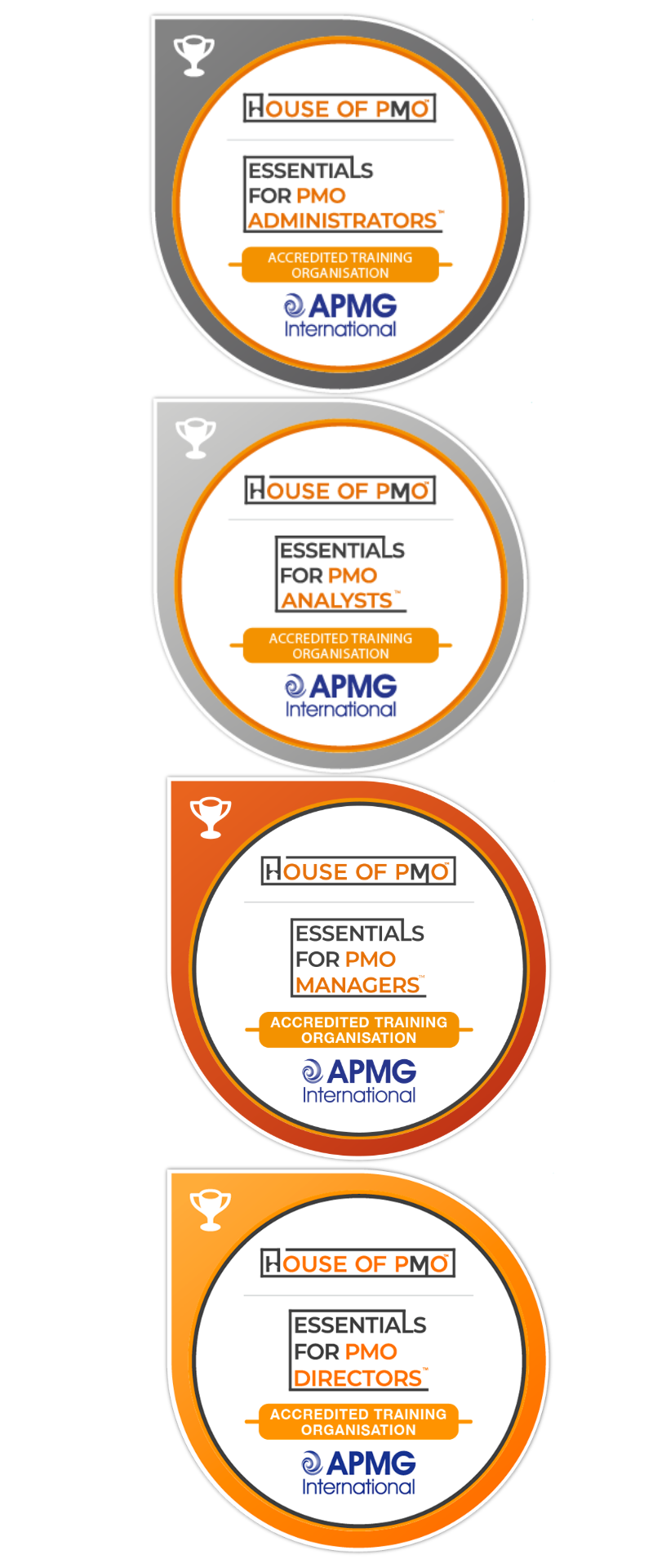 The Essentials Certifications from the House of PMO include four levels; Essentials for PMO Administrators, Essentials for PMO Analysts, Essentials for PMO Managers and Essentials for PMO Directors.
