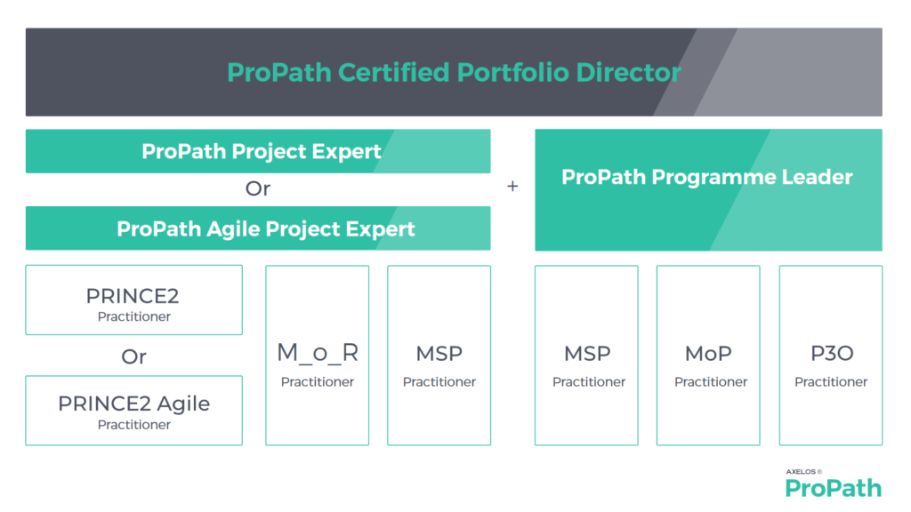 The highest ProPath you’ll see is the Certified Portfolio Director which is a combination of the project ProPaths and the Programme Leader ProPath. In other words, you have at least five of the AXELOS best practice certifications:
