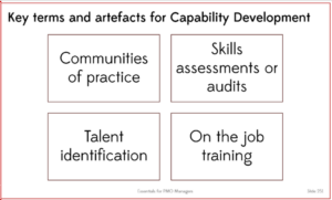 “Capability development addresses the gaps in skills, knowledge, behaviour and experience available versus the requirements identified through capacity management and resource management activities.”