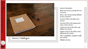 On day one of the course looking at the PMO in context, one of the key topics covered is the service catalogue. The service catalogue is a list of all the services that your PMO can offer to a project, programme, portfolio, enterprise-level – whichever level or type of PMO you’re working in.